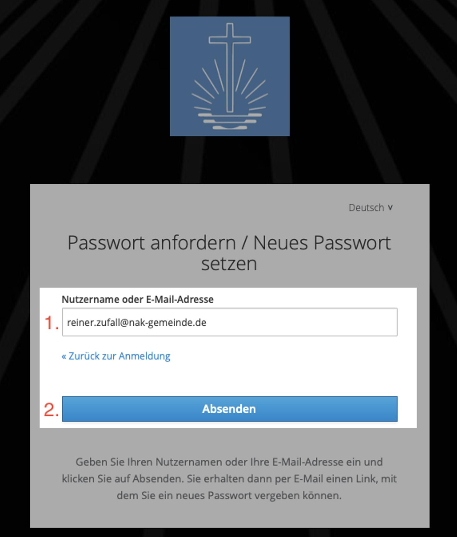 Auf der nun folgenden Seite muss die E-Mail-Adresse eingegeben und das Formular über den Button "Absenden" abgeschickt werden: